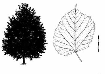 Wuchs: breit kegel- bis breit eiförmige Krone, locker, mittelstark verzweigt, mittelgroße Anzahl Gerüstäste, stark ausladend wachsend, Austrieb Ende April Trieb: ältere Triebe waagerecht, im unteren Kronenbereich hängend, im Winter purpurrot Blatt: ausgewachsen bis 22 cm lang und 16 cm breit, im Kroneninnern deutlich kleiner, Oberseite dunkelgrün, Unterseite heller, Johannis Austriebgelblichgrün, Achselbärte vorhanden, gelblichgrüne Herbstfärbung Blüte: Mitte Juni, gelb, duftend Frucht: 8 mm bis 10 mm dick, kugelig, filzig behaart Verwendung: für große Standräume |