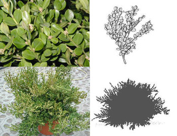 Wuchs: höher als breit wachsend, breitbuschig bis überhängend, teilweise sparrig, lockerer Pflanzenaufbau, lange Internodien, ältere Triebe teilweise verkahlt, sehr schwacher Neutrieb im Spätsommer, Höhe 58 (- 87) cm, Breite 89 (- 119) cm Blatt: hellgrün, breitelliptisch, flach, leicht gebogen, schwach glänzend, mittelgroß, Länge 17 mm, Breite 13 mm Blüte: stark bis sehr stark blühend Schnitteignung: kräftiger Korrekturschnitt fördert Verzweigung und Pflanzenaufbau, bedingt für flache, lockere Formen gut geeignet, Schnitt verhindert Triebverkahlungen Gesamteindruck: aufgrund der Wuchsform noch als gute Sorte einzustufen, jedoch helle Blattfarbe, ansprechend als Solitärpflanze wegen des breiten, teils überhängenden Wuchses, Formierung erfordert häufiges Schneiden |