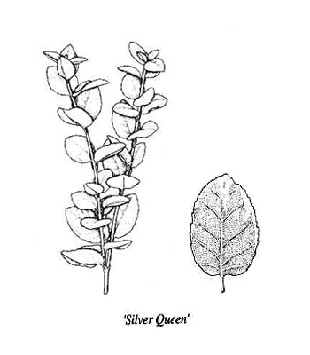 - dichte, breitbuschige Wuchsform - Triebe überwiegend niederliegend, am Boden kriechend, gelegentlich sich gegenseitig hochschiebend - gute bis sehr gute Eignung als Bodendecker - weißbunte Blattfarbe, sehr schmaler weißlicher bis cremefarbener Blattrand, Blattspreite dunkelgrün - an einigen Triebspitzen Blätter vollständig grün - im Winter rötlich verfärbt - rundliche Blattform - hellgraugrüne Triebfarbe - kein Fruchtansatz - gutes bis sehr gutes Klettervermögen Höhe: 60 - 80 cm Breite: 80 - 100 cm |