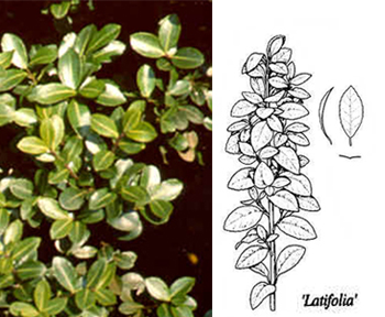 - aufrechte bis buschige Wuchsform - gut verzweigte Triebe, teilweise abstehend - sehr großes, dunkelgrünes, flaches bis konkaves Blatt, schwach glänzend - mittelstark wachsend - geringe bis mittlere Eignung für bodendeckende Bepflanzung Höhe: 80 - 100 cm Breite: 100 - 120 cm |