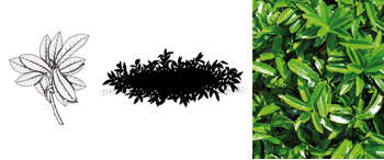 Wuchs: breiter als hoch, flach, dicht verzweigt, schwach wachsend Höhe: 30 (- 35) cm Breite: 60 (- 100) cm Blatt: dunkelgrün, glänzend, schmal elliptisch, schöne Belaubung, Länge 8 - 11 cm, Breite 3 - 4 cm Blüte: fehlend |