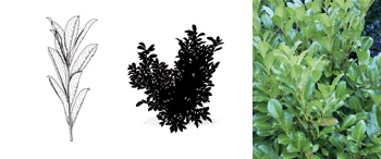 Wuchs: höher wie breit, locker verzweigt, mittelstark wachsend Höhe: 190 (- 290) cm Breite: 170 (- 250) cm Blatt: dunkelgrün, stark glänzend, elliptisch, sehr großes Blatt, Länge 13 - 15 cm, Breite: 5 - 7 cm Blüte: fehlend |