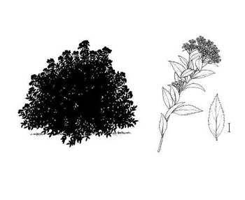 Wuchsform: mittelstark bis stark wüchsig, mittel bis gut von der Basis durchtreibend, breitbuschig, einzelne Triebe straff aufrecht wachsend Höhe: 60 - 80 cm Breite: 80 cm Blatt: 3,0 - 5,5 cm lang, 1,0 - 2,5 cm breit, hellgrün im Austrieb, später mittelgrün, elliptisch Blüte: Blühbeginn Anfang Juli, flache weiße Dolden, reich blühend Frosthärte: sehr frosthart Gesamteindruck: ansprechend durch großen Blütenreichtum Verwendung: Gruppenpflanzung oder Einzelstellung, geeignet für schmale Hecken |
