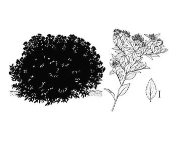 Wuchsform: mittelstark wüchsig, sehr gut von der Basis durchtreibend, dicht, stark verzweigt, kompakter Wuchs Höhe: 50 - 70 cm Breite: 80 - 90 cm Blatt: 2,5 - 6,5 cm lang, 1,0 - 2,5 cm breit, im Austrieb hellgrün bis gelbgrün, später hellgrün Blüte: Blühbeginn Anfang Juli, dunkelrosa Blüten-dolde, reich blühend Frosthärte: frosthart Gesamteindruck: auffallende Blattfarbe beim Austrieb und im Sommer, schwarzbraune Triebe im Winter Verwendung: für farbkontrastreiche Bepflanzungen |