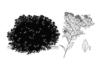 Wuchsform: mittelstark wüchsig, sehr gut von der Basis durchtreibend, dicht, stark verzweigt, kompakter Wuchs Höhe: 50 - 70 cm Breite: 80 - 90 cm Blatt: 2,5 - 6,5 cm lang, 1,0 - 2,5 cm breit, im Austrieb hellgrün bis gelbgrün, später hellgrün Blüte: Blühbeginn Anfang Juli, dunkelrosa Blüten-dolde, reich blühend Frosthärte: frosthart Gesamteindruck: auffallende Blattfarbe beim Austrieb und im Sommer, schwarzbraune Triebe im Winter Verwendung: für farbkontrastreiche Bepflanzungen |